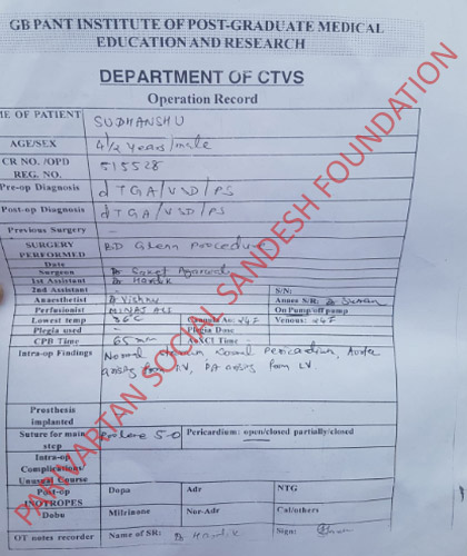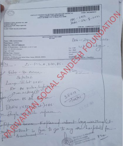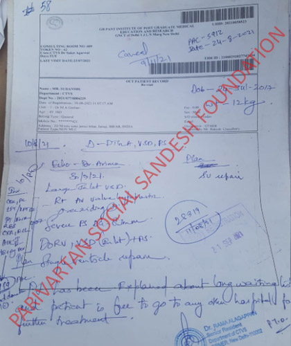 As per his treatment, Parivartan Social Sandesh Foundation would like to requests you to please help Sudhanshu, so he can fight with (Atrial Septal defect).